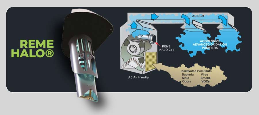 One feature that sets REME HALO® apart is its unique ability to produce low levels of hydrogen peroxide in the air circulating through your air-conditioning system and indoor spaces. This innovation reduces bacteria, viruses, odors, and mold spores both in the air and on surfaces throughout your home, providing a healthier and fresher living environment.