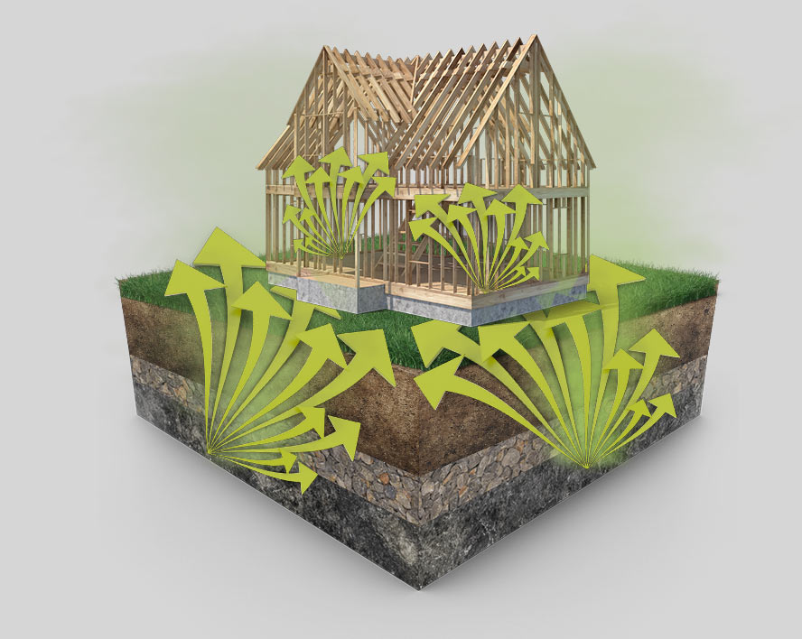 Radon is released from the ground into the air above it. The concentration of radon can vary depending on the type of soil and rock beneath your home.